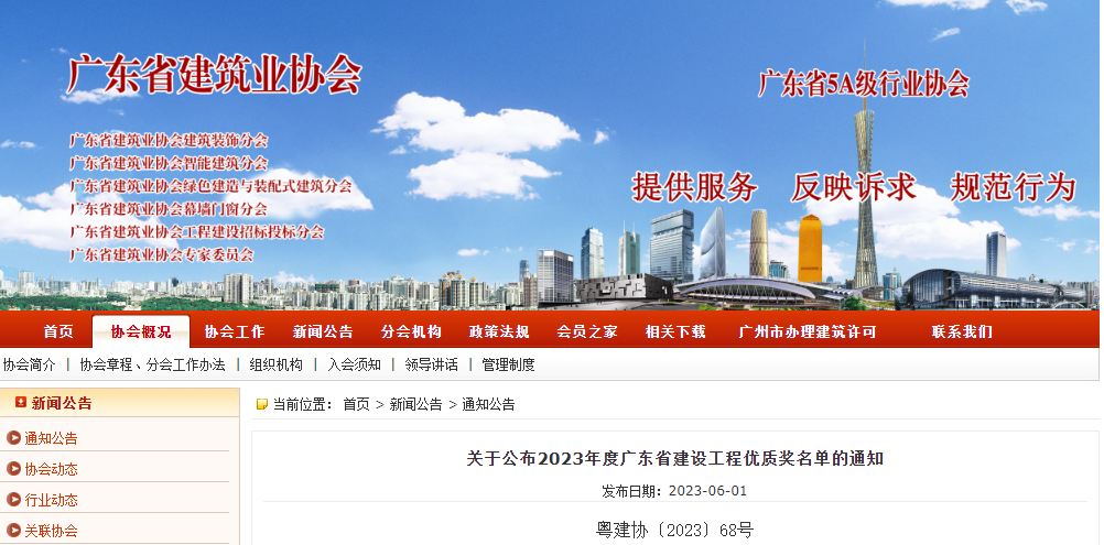 近日,廣東省建筑業協會公布2023年度廣東省建設工程“金匠獎”和“優質獎”名單,集團承接的萬華花園項目、東莞市南城陽光第一小學分校項目同時榮獲“金匠獎”和“優質獎”。