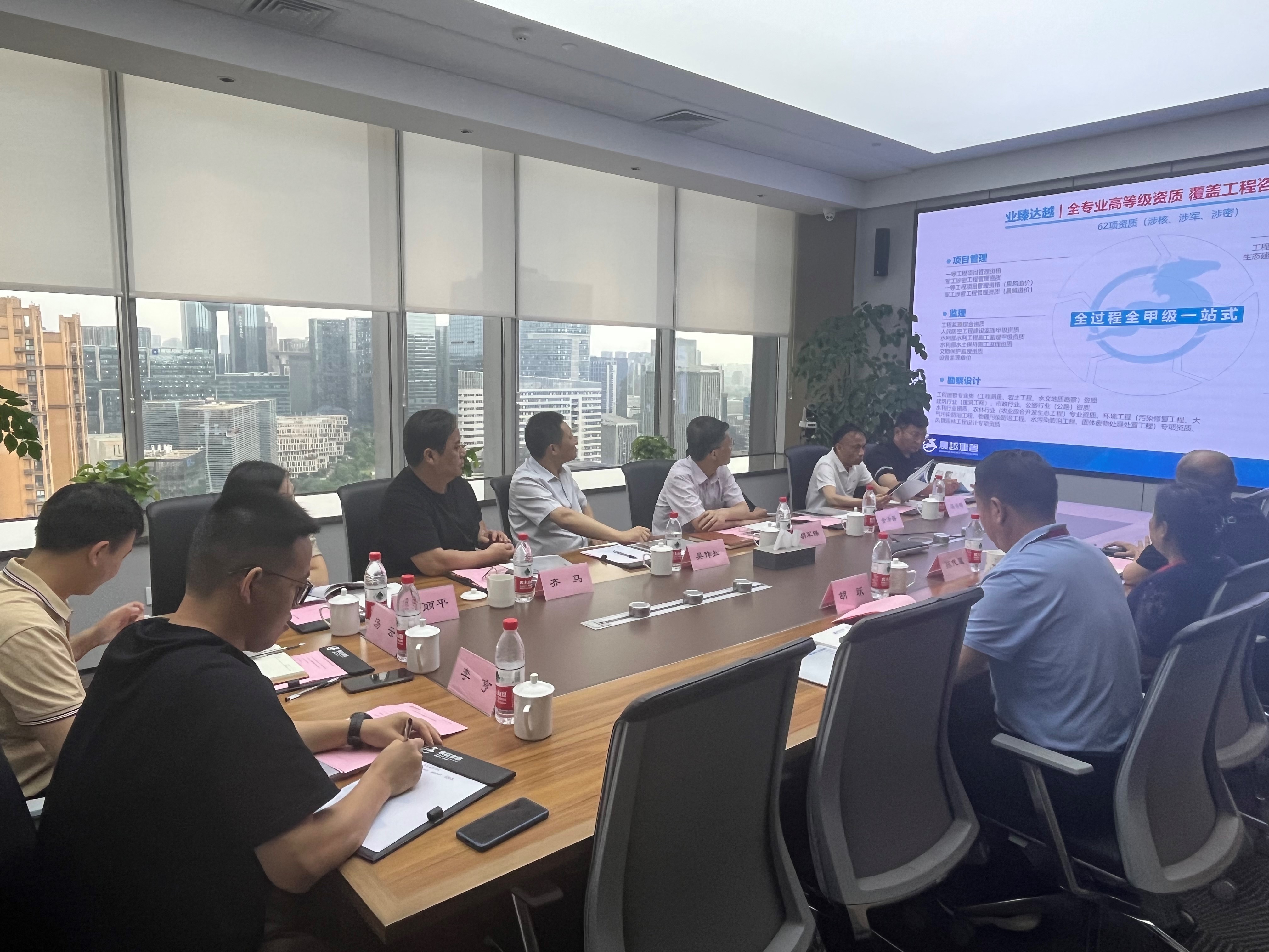首先,陳代蓮總對胡軍保市長一行的到來表示熱烈歡迎,并就集團安徽省區域的項目情況進行了匯報。隨后,黎明浚總對集團情況及典型業績進行了介紹,并就項目建設采用傳統模式與全咨模式進行了比較分析。