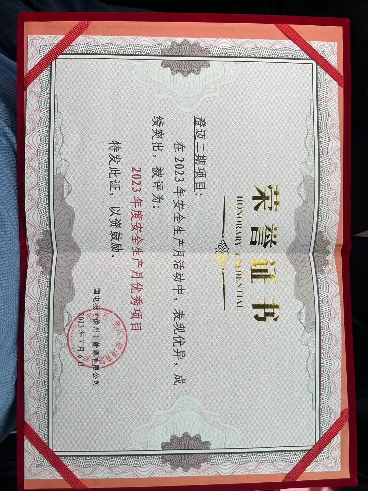 近日,集團監理的海南省澄邁縣戶用分布式光伏發電項目(二期10MW)項目,榮獲國電投(儋州)能源公司頒發的“2023年度安全生產月優秀項目”榮譽證書。