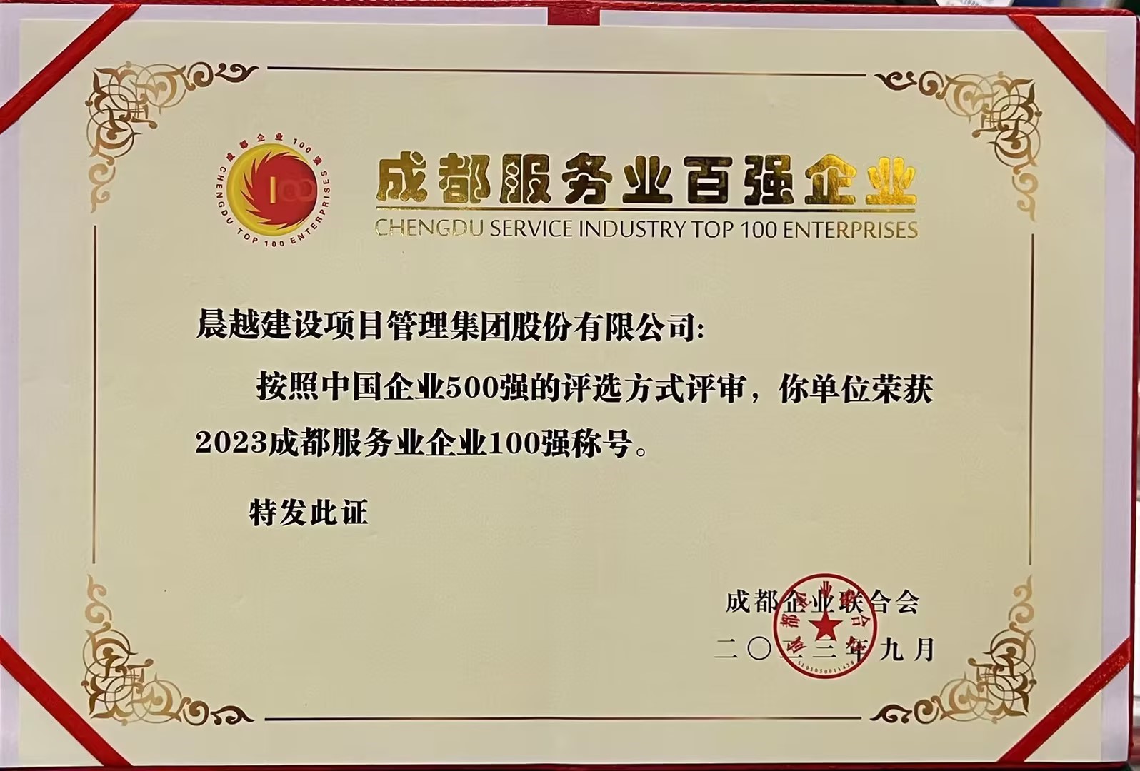 此次評選,得到了成都市經信局、市發改委、市國資委、市商務局、市市場監管局、市統計局、市工商聯以及各區(市)縣相關部門的大力支持和配合。經過各行業專家、經濟領域專家從企業營業收入、凈利潤、資產總額、所有者權益、納稅總額、從業人數、研發人員人數、研發費用、信息化投入等多方面審核,最終評選出服務業、制造業等四大領域的“2023成都企業100強”名單。晨越建管集團榮獲“2023成都服務業企業100強”榮譽!