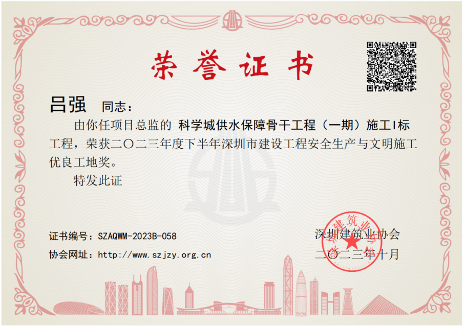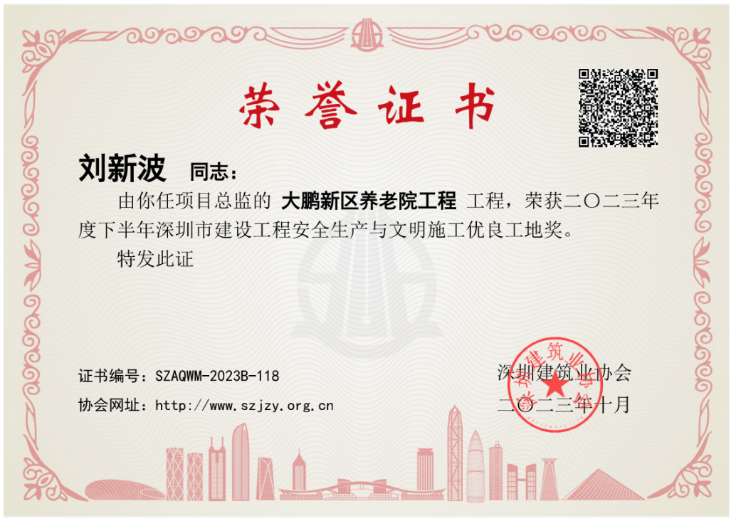 深圳建筑業協會成立于1988年12月28日,是在深圳市社會組織管理局注冊登記的非盈利性社會組織,接受登記機關和深圳市住房和建設局的業務指導和監督管理。為貫徹落實黨中央、省、市關于安全生產的指標指示,進一步促進深圳市建筑施工安全生產,提高建設工程安全生產文明施工管理水平,深圳市建筑業協會組織開展建設工程安全生產文明施工優良工地的項目檢查工作。所申報的項目需達到《建筑施工安全檢查標準》優良等級,且未發生一般及以上生產安全事故。在經歷了嚴格的初審、專家組現場檢查、復查后,集團多項目獲評“雙優”工地。