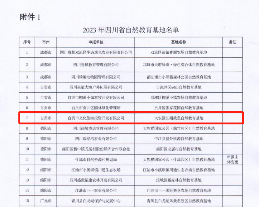 四川省林業和草原局發布《關于公布2023年四川省自然教育基地、2023年有效期屆滿監測合格的四川省自然教育基地名單的通知》,江姐故里成功入選“2023年四川省自然教育基地”。