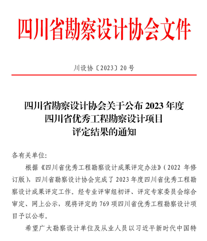 11獲2023年度四川省優秀工程勘察設計項目