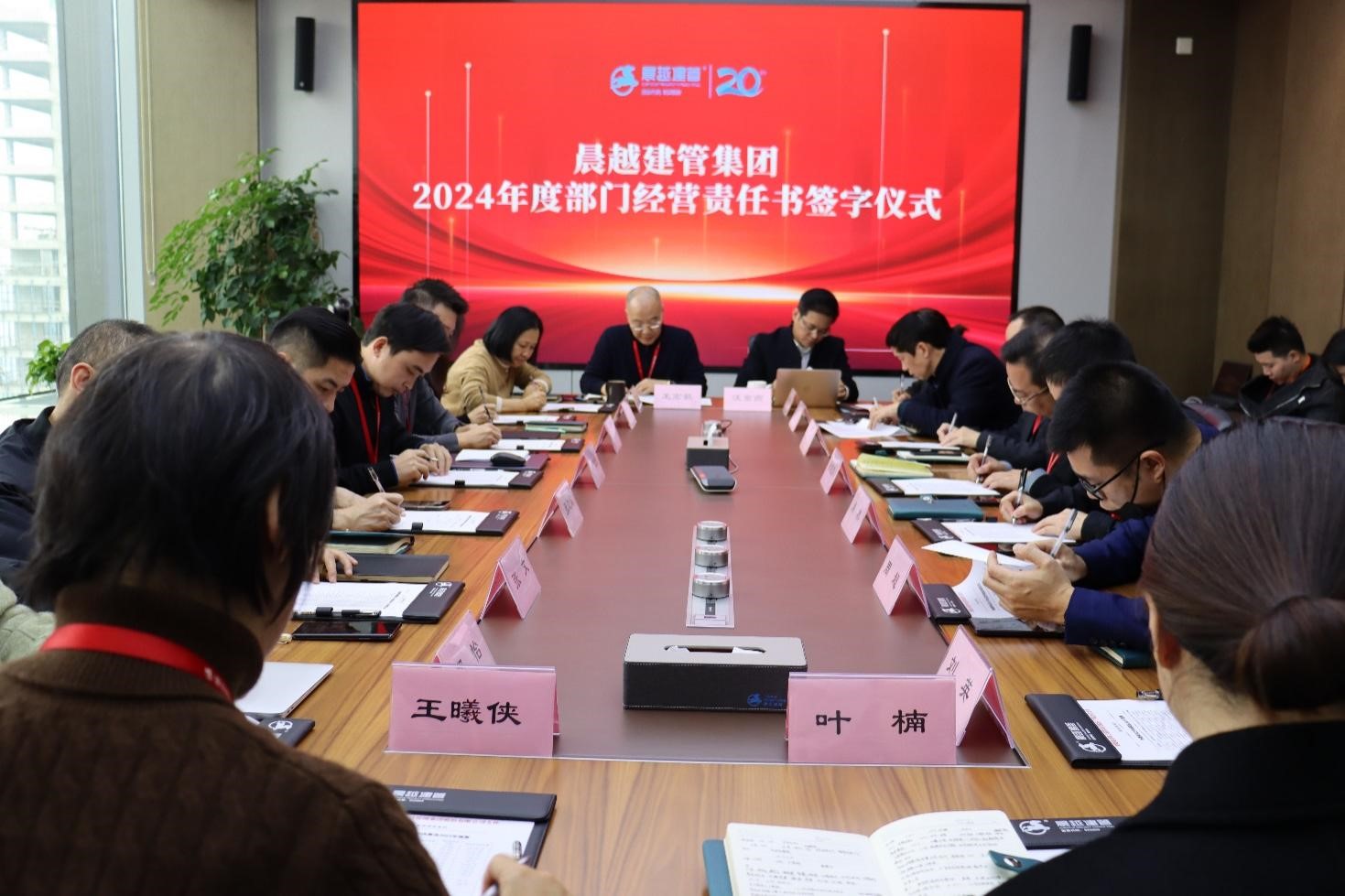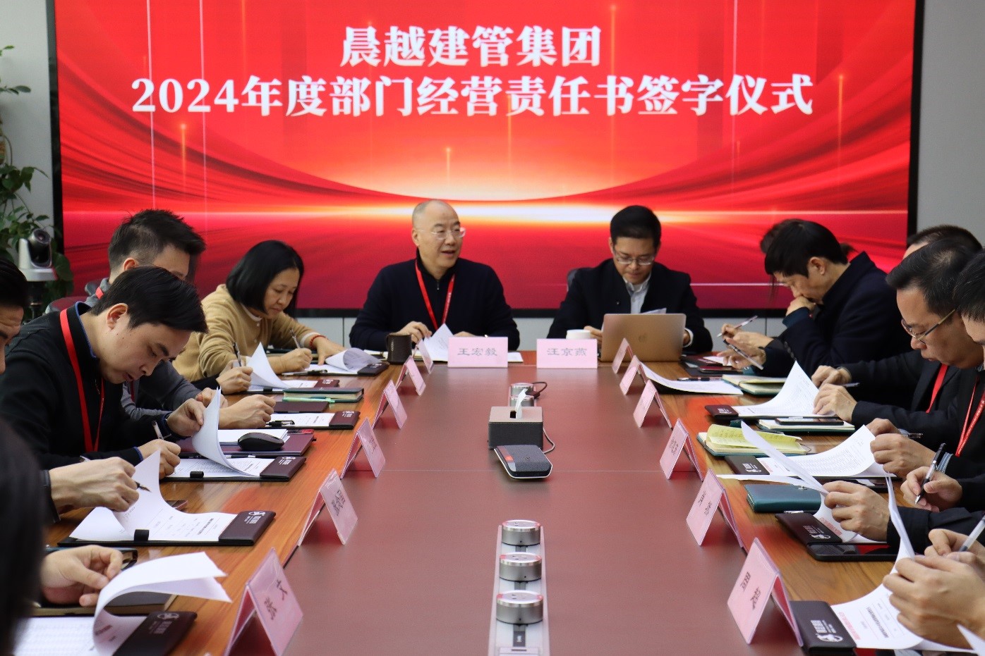 2024年1月18日,晨越建管集團2024年度部門經(jīng)營責任書簽字儀式在集團總部吉泰壹號大廈23樓業(yè)臻會議室舉行。集團黨委書記、董事長王宏毅,榮譽董事長汪京燕出席會議并講話,各部門負責人參加會議。財務(wù)總監(jiān)肖然主持會議。