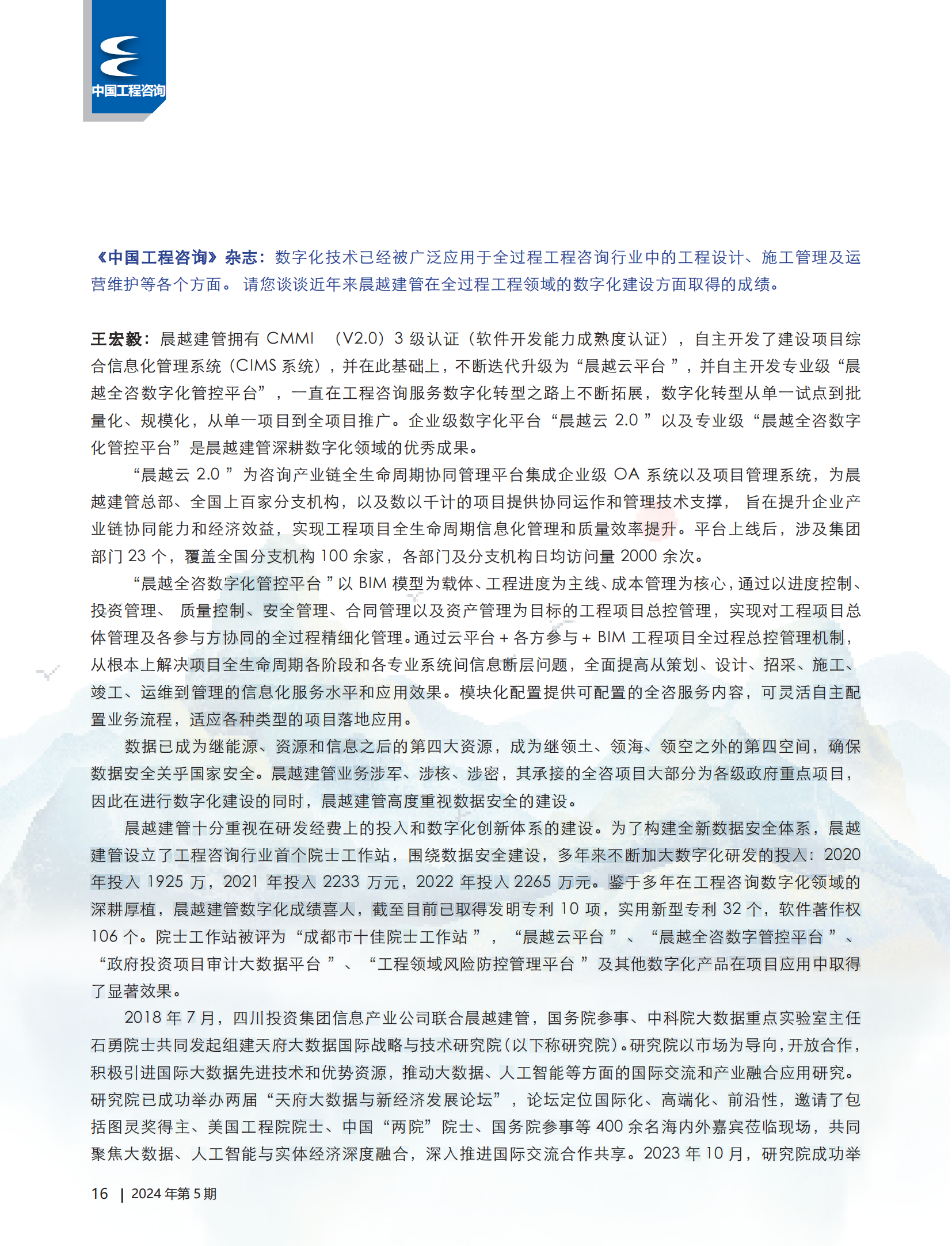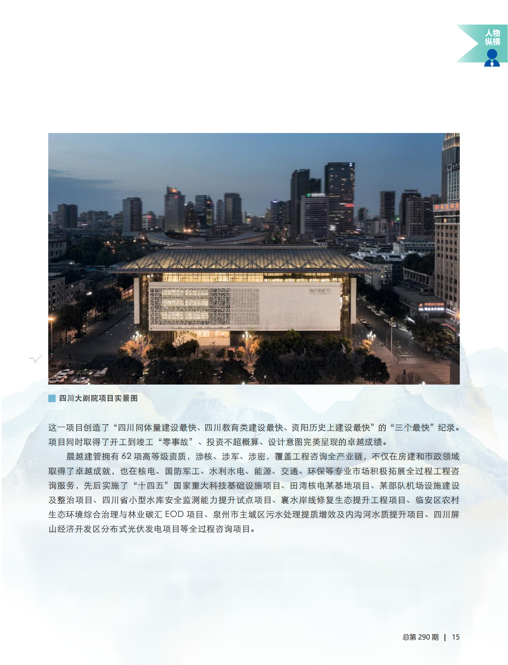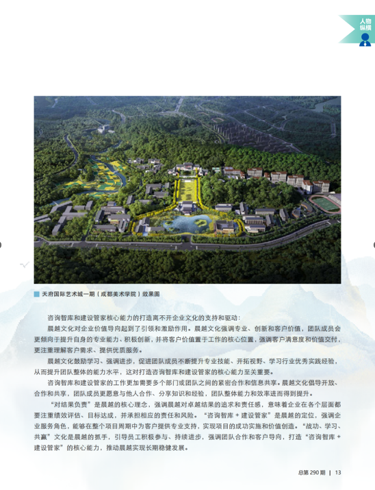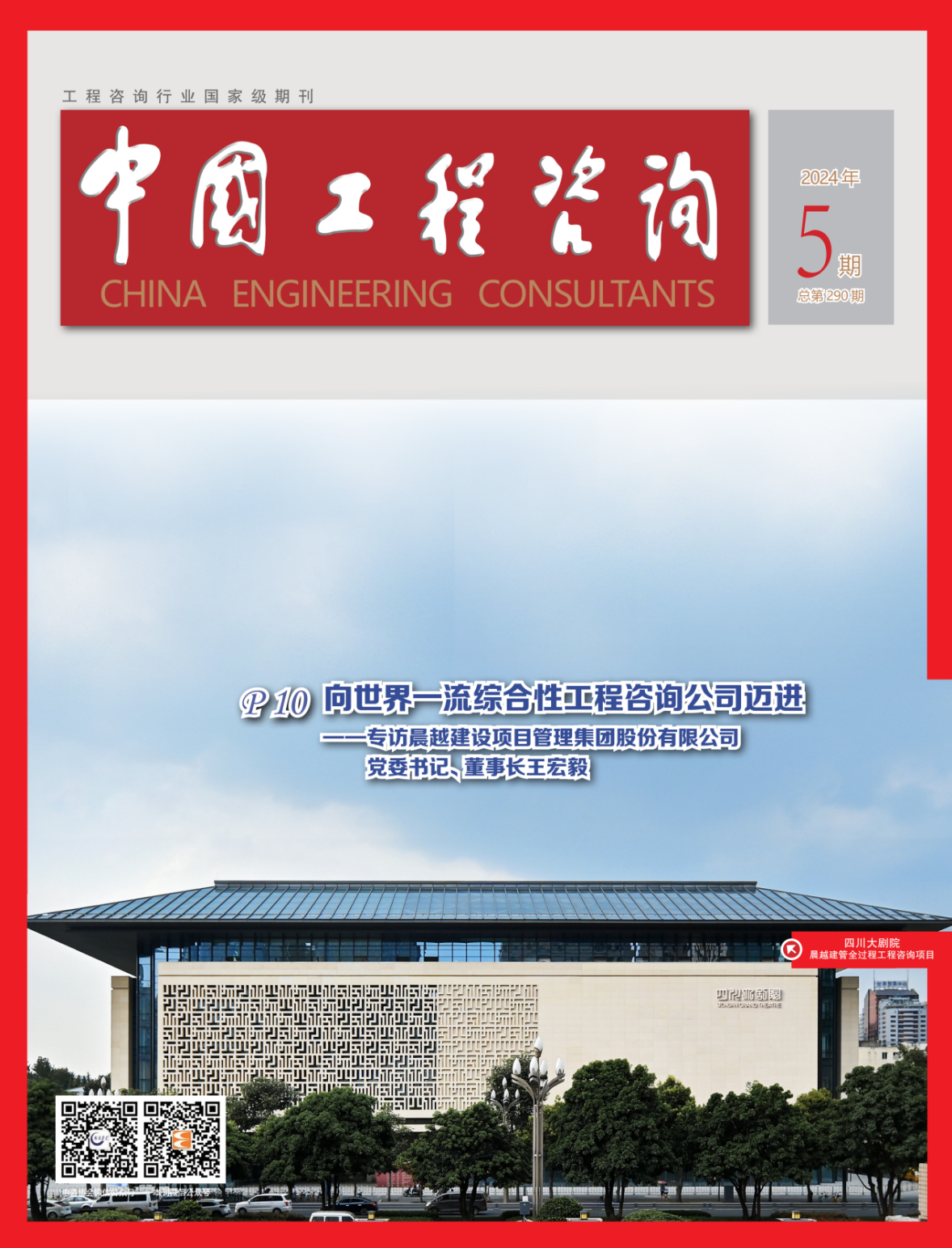 【晨越動態】國家級期刊《中國工程咨詢》雜志封面刊登四川大劇院全景圖及王宏毅董事長專訪標題