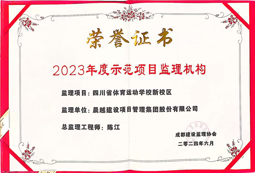 集團(tuán)資質(zhì)管理部根據(jù)成都市建設(shè)監(jiān)理協(xié)會(huì)關(guān)于開(kāi)展《2023年度成都市建設(shè)監(jiān)理行業(yè)優(yōu)秀監(jiān)理企業(yè)》評(píng)選申報(bào)的通知要求準(zhǔn)備并提交了評(píng)選申請(qǐng),經(jīng)專家組對(duì)企業(yè)和監(jiān)理項(xiàng)目?jī)刹糠值暮瞬椴⒋蚍?,評(píng)選晨越建管集團(tuán)為“2023年度優(yōu)秀監(jiān)理企業(yè)”、集團(tuán)全過(guò)程工程咨詢項(xiàng)目四川省體育運(yùn)動(dòng)學(xué)校新校區(qū)項(xiàng)目為“2023年度示范項(xiàng)目監(jiān)理機(jī)構(gòu)”、項(xiàng)目總監(jiān)陳江為“2023年度優(yōu)秀總監(jiān)理工程師”。
