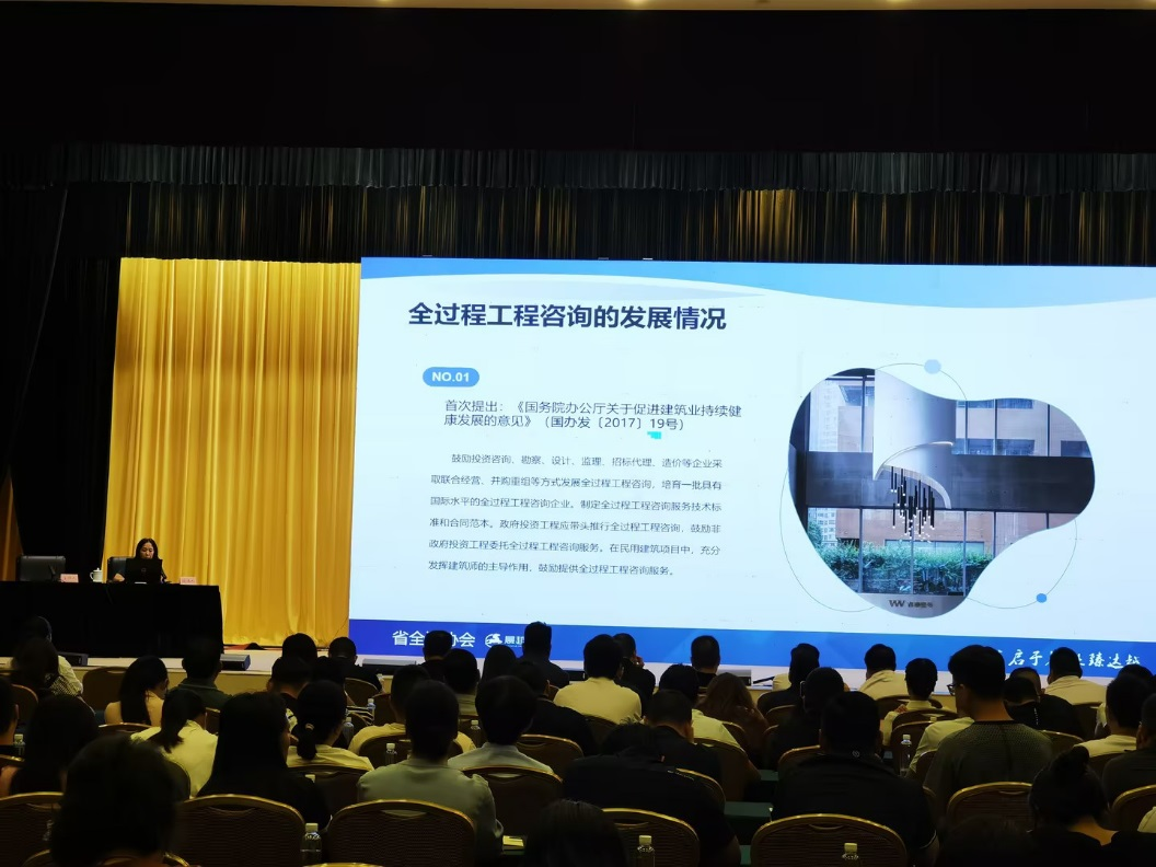 會上,陳代蓮總以《全過程工程咨詢服務分享》為題,從全過程工程咨詢服務的發展情況、服務內容、優勢,及全過程工程咨詢單位的選擇等四個方面進行授課。