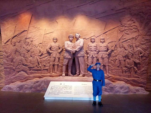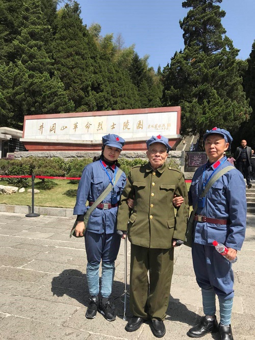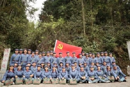 學員50多名,全程著紅軍服,一顆紅星頭上戴,紅旗飄飄掛兩邊,過上軍訓生活,每天行進在井岡山峰巒疊翠之間,吸引了無數當地居民和外來散客的互動。一次晚餐后,全體學員自發在餐館門外坐地演唱經典歌曲,抒發紅色感情,得到臨近商家、民眾、散客的夸贊,許多人情不自禁參與合唱,爭相上前握手著紅軍裝的學員,頻頻合照留念,激動地表達對黨、對紅軍、解放軍的崇敬,晚會成了“軍”民聯歡。