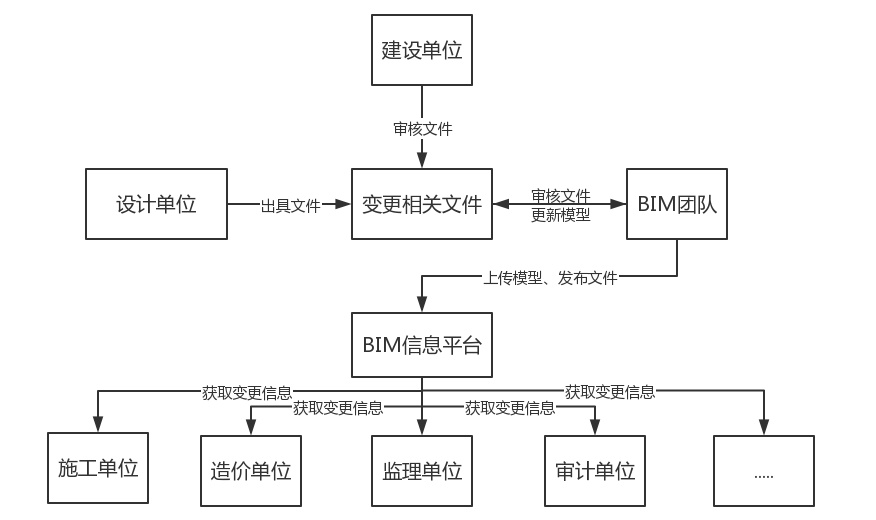 建議由建設(shè)單位牽頭,BIM團隊輔助,建立統(tǒng)一管理變更文件的信息平臺,改變傳遞為發(fā)布方式(詳見圖9),及時更新文件信息,信息源頭一致且可追溯,減少中間環(huán)節(jié),從而提高文件的傳遞效率和準(zhǔn)確度。