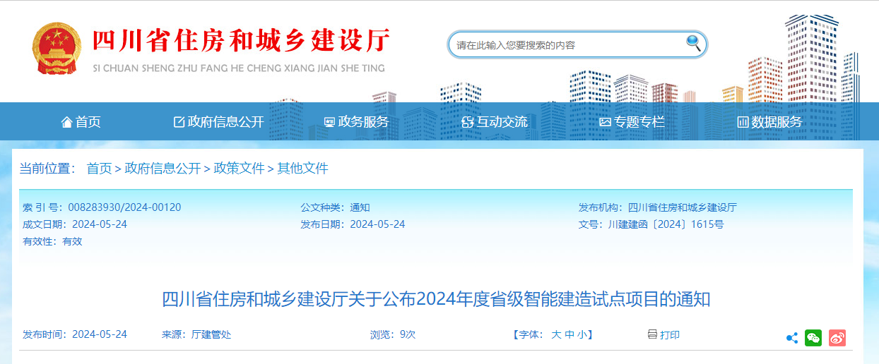 通過開展智能建造項目試點,旨在加快推動建筑業(yè)與先進制造技術(shù)、新一代信息技術(shù)深度融合,拓展數(shù)字化、智能化應(yīng)用場景,培育智能建造相關(guān)產(chǎn)業(yè)、建筑業(yè)骨干企業(yè),形成可復(fù)制和可推廣的產(chǎn)業(yè)技術(shù)體系、企業(yè)發(fā)展路徑和項目管理模式,助力四川省“建筑強省”建設(shè)。