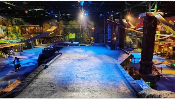 “遇見喀什”節(jié)目由國內(nèi)一線創(chuàng)編導(dǎo)團隊匠心打造,以國際化偶劇演藝與新疆本土民族歌舞創(chuàng)新結(jié)合的形式,融合歷史文化與現(xiàn)代科技手段,用移步換景的舞美空間帶給游客震撼的感官體驗,用跌宕起伏的故事情節(jié)引發(fā)游客強烈的情緒共鳴。在室內(nèi)空間“千年疏勒古城”中,布局有非物質(zhì)文化遺產(chǎn)展陳、民族特色傳統(tǒng)店鋪及數(shù)千件精美道具,賦予觀眾劇中人的角色體驗,引領(lǐng)觀眾去體悟絲路歷史長河中一段蕩氣回腸的愛情故事。
