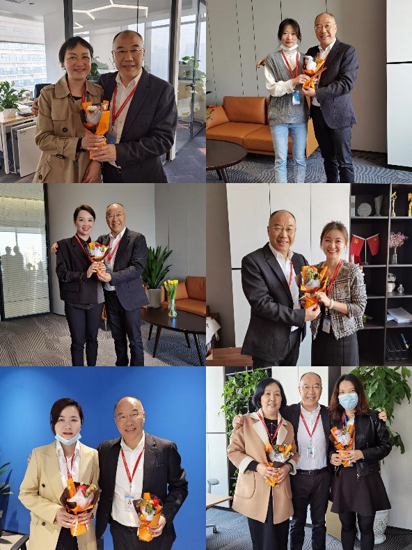 一早,集團(tuán)黨委書記、董事長(zhǎng)王宏毅向集團(tuán)本部辦公區(qū)的女同事們送上了節(jié)日祝福。一束束鮮花襯托著女同事們美麗的笑靨,一句句祝福溫暖著每一位女同事的心靈。感受著晨越大家庭的溫暖,晨越新女性們一起慶祝屬于自己的節(jié)日。
