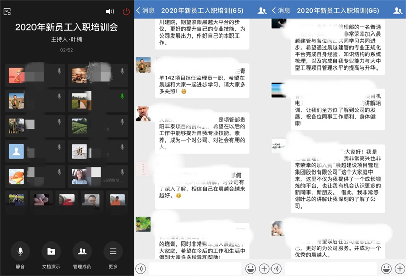 線上新員工入職培訓會于5月6日下午15點召開,本次參會新員工涵蓋集團總部及遍布全國各地項目部人員。本次培訓以集團“務實、進取、價值、共贏、積極、向上”的企業文化展開,帶領64位新員工們了解晨越“大數據、大平臺、大服務”的經營理念。本次培訓以集團黨委書記、董事長王宏毅寄語新員工拉開序幕,并對新員工的加入表示祝賀并做了企業文化精神分享。