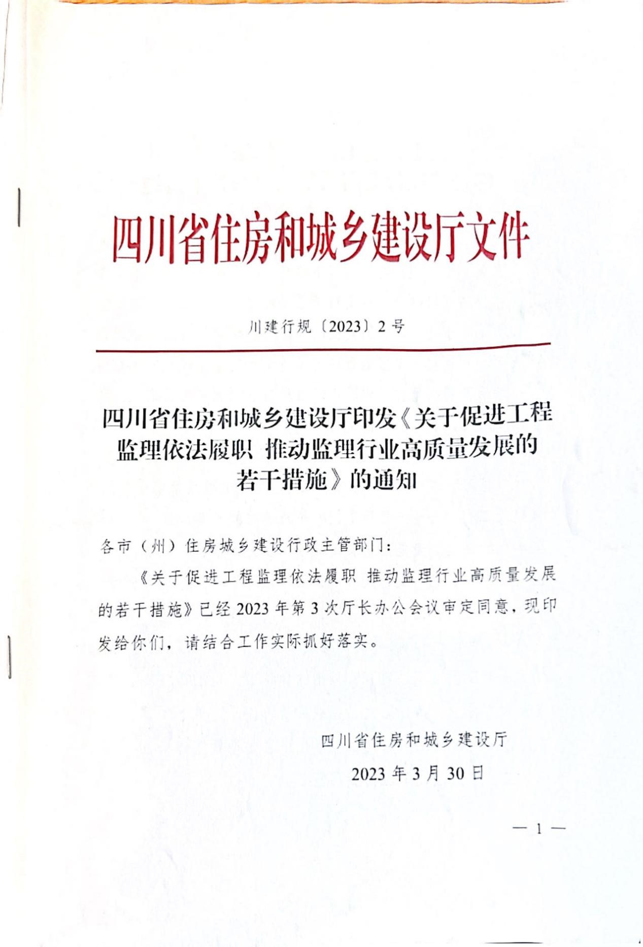 為深入貫徹落實黨中央、國務(wù)院和省委、省政府關(guān)于工程監(jiān)理行業(yè)改革工作決策部署,促進工程監(jiān)理依法履職,充分發(fā)揮工程監(jiān)理在質(zhì)量和安全生產(chǎn)中的管控作用,推動監(jiān)理行業(yè)高質(zhì)量發(fā)展,四川省住房和城鄉(xiāng)建設(shè)廳在深入調(diào)研、充分溝通、認真總結(jié)的基礎(chǔ)上,制定《關(guān)于促進工程監(jiān)理依法履職 推動監(jiān)理行業(yè)高質(zhì)量發(fā)展的若干措施》,將于2023年5月1日正式實施。